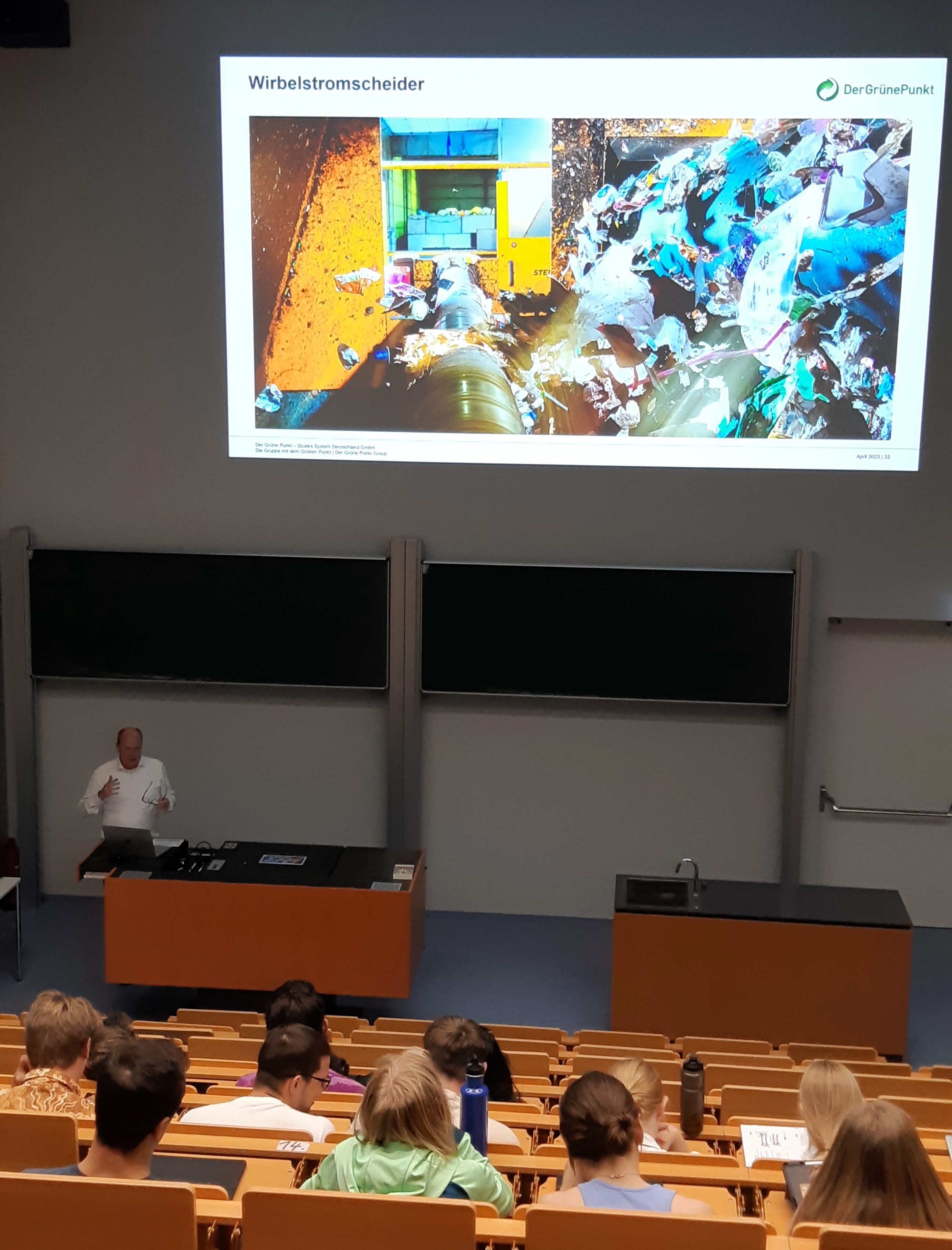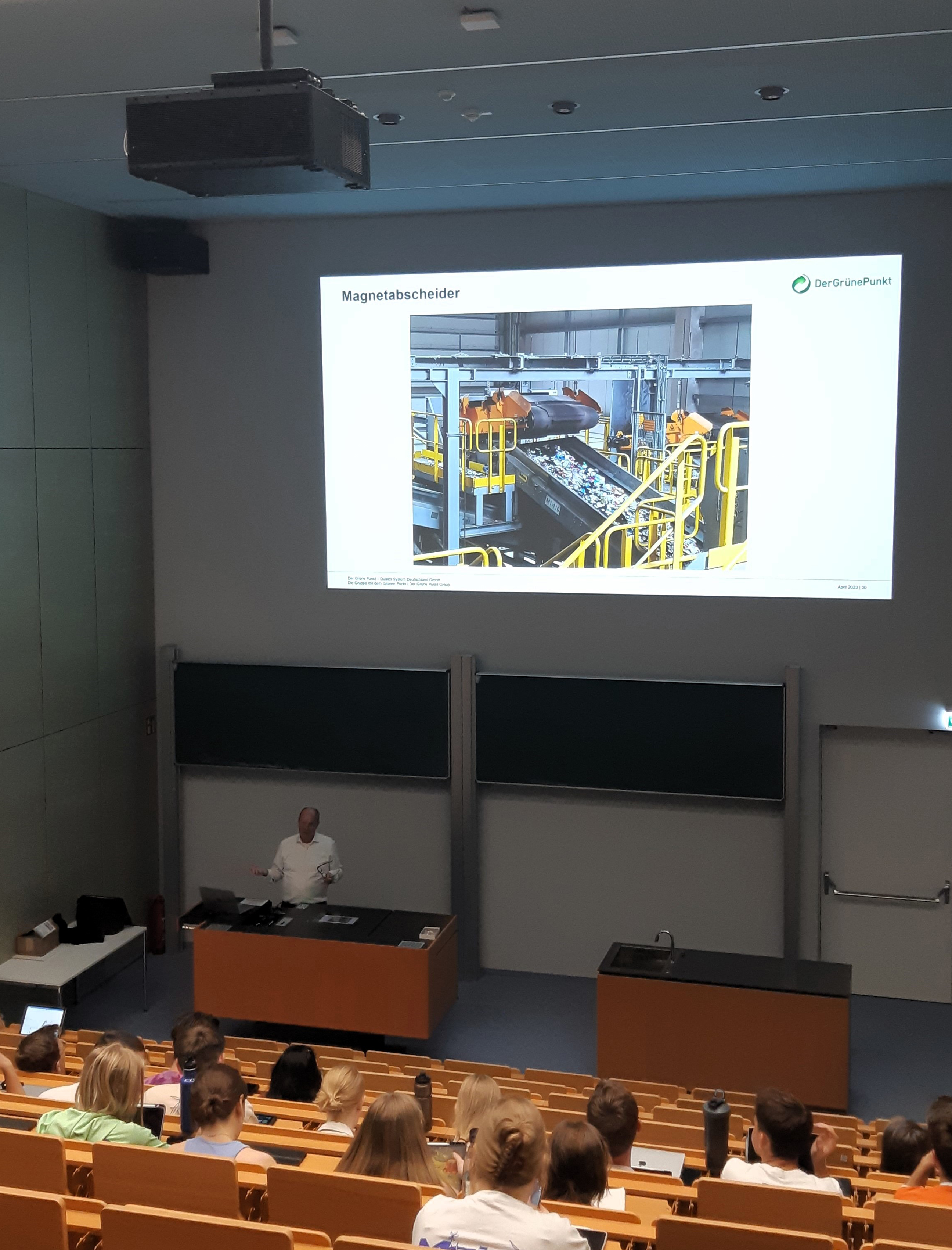 What began in the mid-2010s with the series "student congress: packaging, environment, future" for students at universities with training courses in packaging technology and design is now continued in invitations to lectures at renowned university institutes such as the Institute for Packaging Technology and Sustainability at the HTWK Leipzig, headed by Professor Eugen Herzau, or the Institute for Plastics and Circular Technology at the Leibniz University of Hanover, headed by Professor Hans-Josef Endres: Green Dot experts inform students in lectures about the current state of sorting and recycling technology, especially for plastics, about developments in packaging design, ways to measure the recyclability of packaging and the link to obligations from EU and German packaging legislation. Because the latter in particular will increasingly influence practical work in the field of packaging technology and design, e.g. through specifications on recyclability and the use of recycled materials.