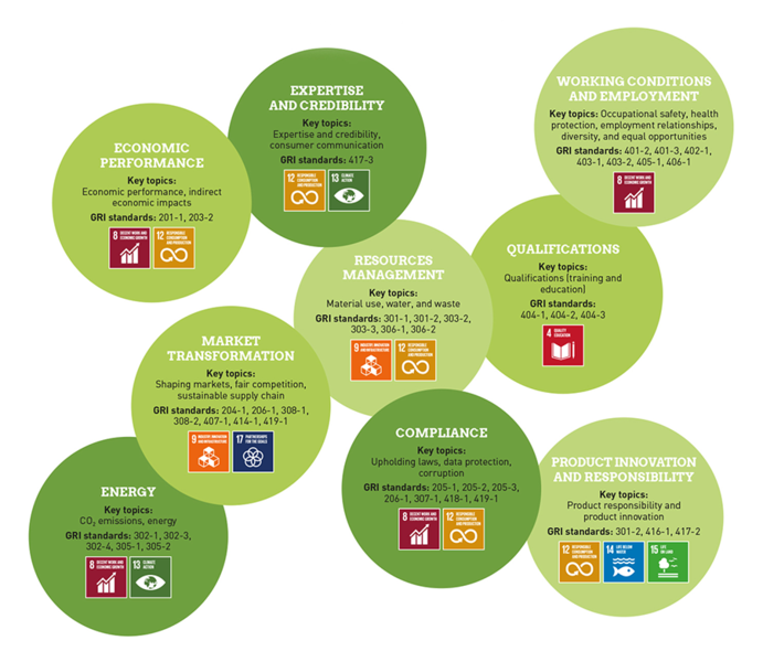 Based on conversations with our stakeholders, we know which topics we should drive forward as a matter of priority. The issues that we want to focus on reflect our unique business model where policy-making, business, and society meet. As a result, and as a further evolution of our materiality matrix, we have come up with nine equal areas of action – each with several key topics and a link to specific Sustainable Development Goals (SDGs).